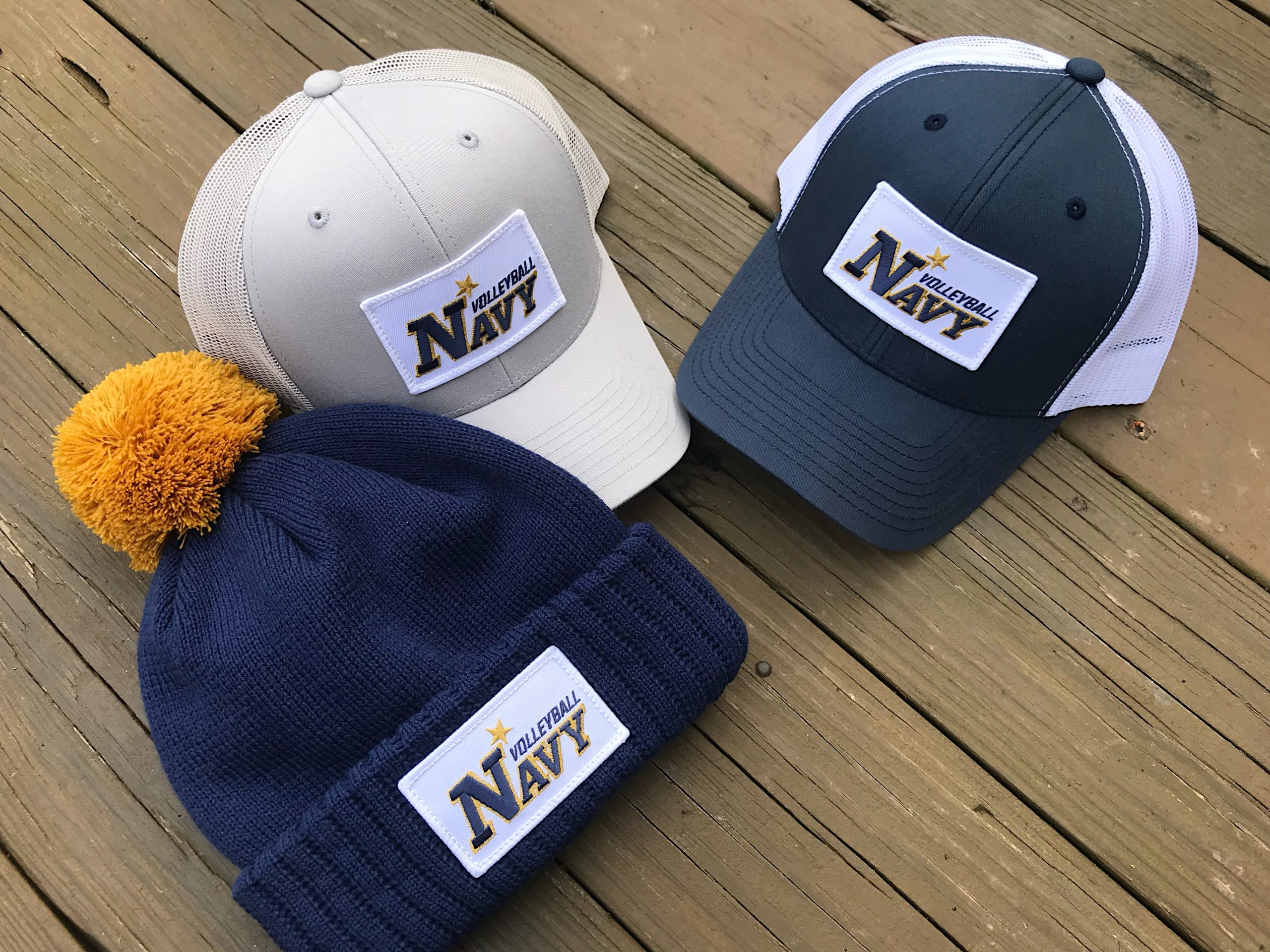 | Style | Navy/White Trucker, Heather Grey/Gold Trucker, Grey/Grey Trucker, Dark Camo Trucker, Light Camo/Black, Light Camo/Khaki, Navy Volleyball Embroidered Patch |